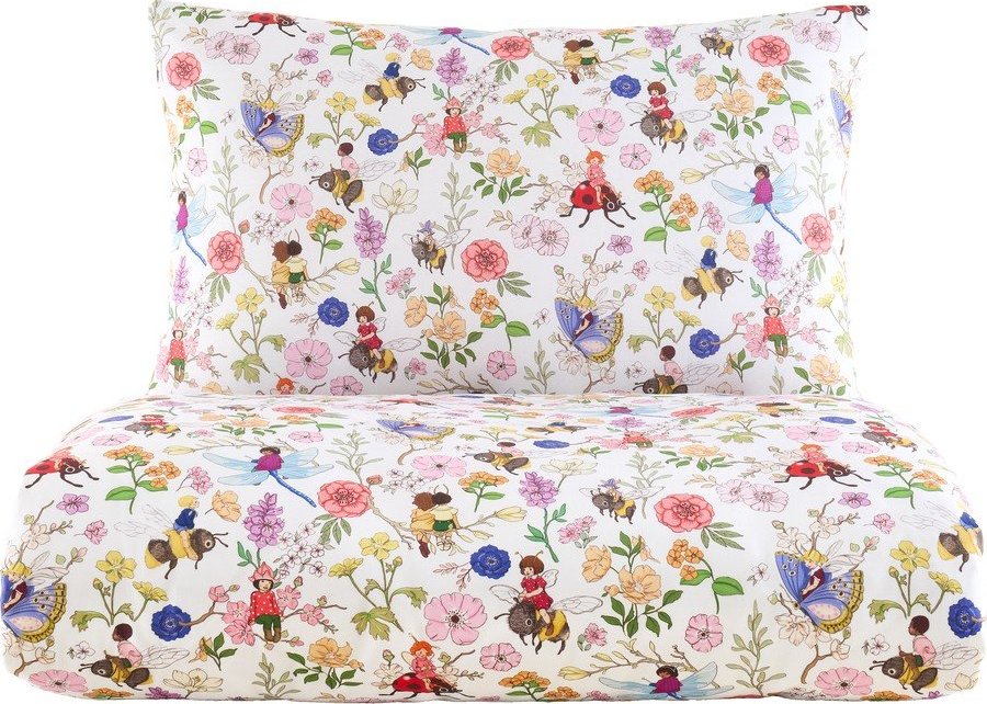 Dětské povlečení na jednolůžko Garden Friends od značky Belle & Boo přenese do dětského pokoje kouzlo letní louky.