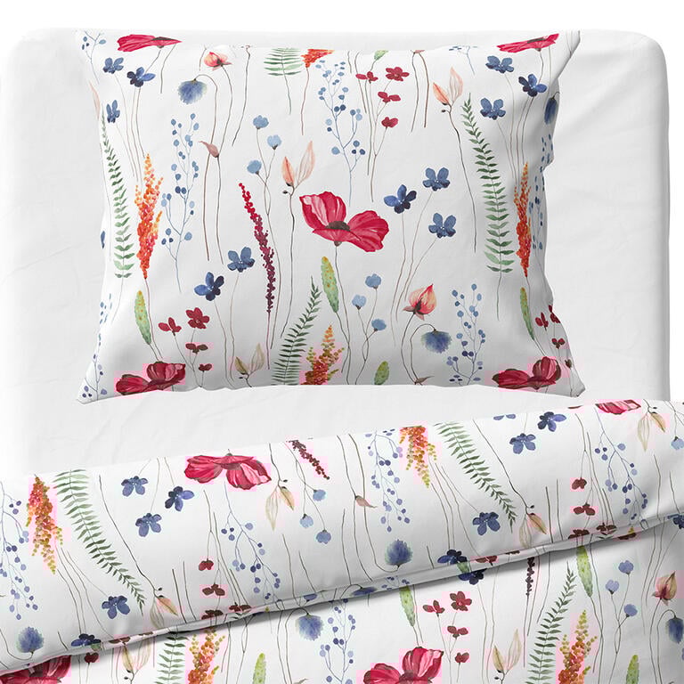 Ložní povlečení s krásným potiskem lučních květů vnese do vaší ložnice atmosféru pohody a optimismu. Ideální volba pro každého, kdo touží po útulném, a přitom moderním interiéru. Jedna strana s potiskem, druhá jednobarevná.