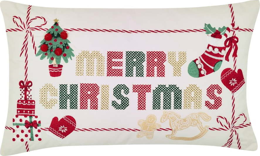 Bavlněný dekorační polštář s vánočním motivem 30×50 cm Merry Christmas Cross Stitch – Catherine Lansfield