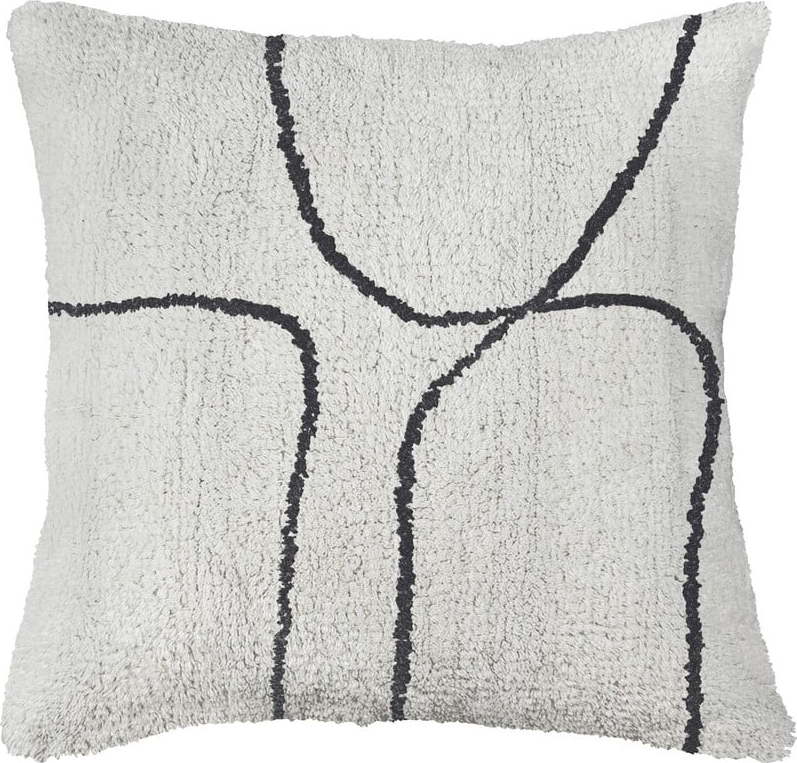 Je vyrobený z jemného tuftovaného materiálu a zdobí ho abstraktní vzor s organickými liniemi. Navíc se nemusíte bát, jak polštář natočíte – obě jeho strany mají totožnou texturu i vzor, což zajišťuje ucelený vzhled. Všívaný povrch navíc dodává povlaku výraznou texturu a na dotek měkký pocit, který přímo vybízí k pohlazení.