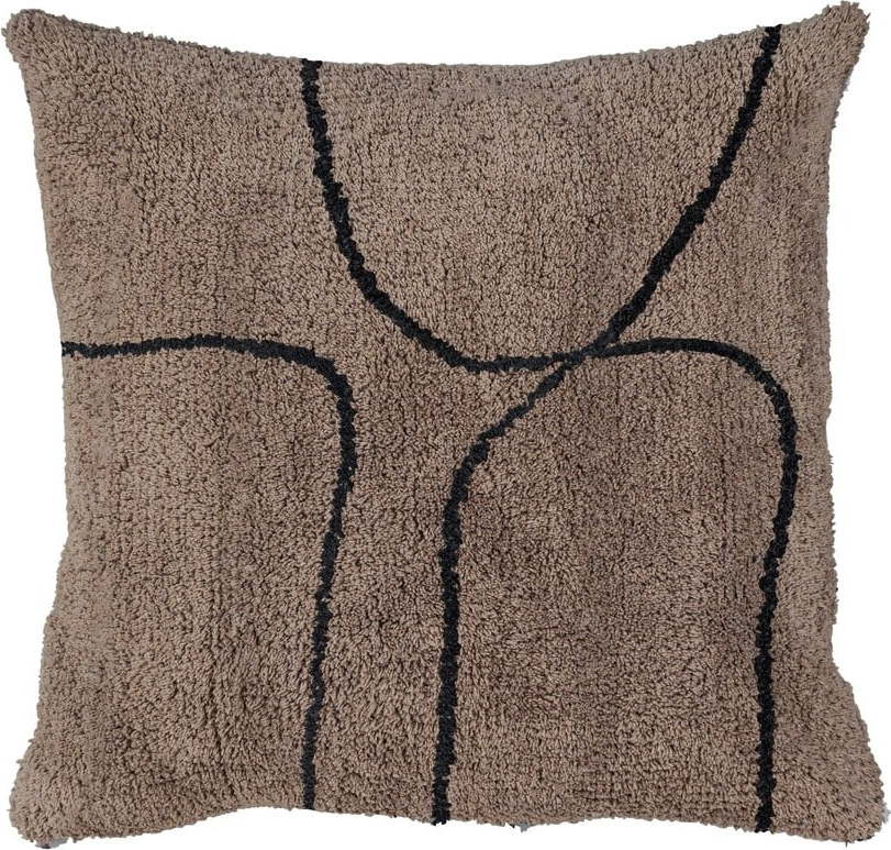 Je vyrobený z jemného tuftovaného materiálu a zdobí ho abstraktní vzor s organickými liniemi. Navíc se nemusíte bát, jak polštář natočíte – obě jeho strany mají totožnou texturu i vzor, což zajišťuje ucelený vzhled. Všívaný povrch navíc dodává povlaku výraznou texturu a na dotek měkký pocit, který přímo vybízí k pohlazení.