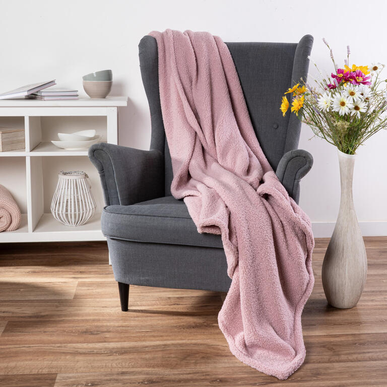 Beránková deka Cozy v něžné pudrové barvě nabízí svým rozměrem velkorysou huňatou plochu, která vám umožní zachumlat se do ní úplně celí a užívat si pohodové hřejivé chvíle u knížky nebo oblíbeného pořadu.