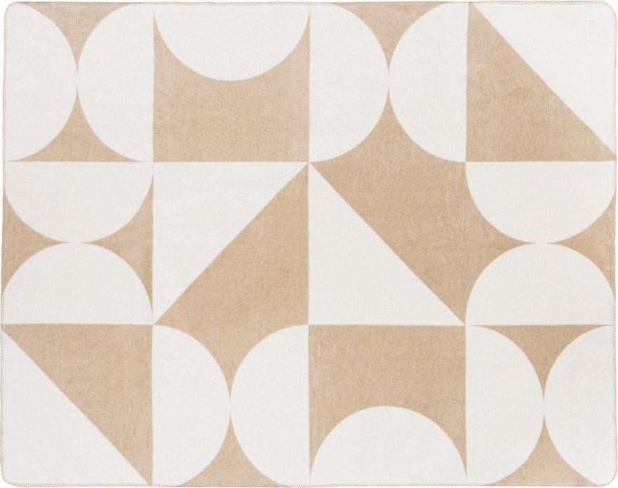 Deka Tul od značky noo.ma je hřejivým doplňkem, který se stane nepřehlédnutelnou ozdobou vašeho obývacího pokoje. Díky svému výraznému geometrickému vzoru s kruhy, půlkruhy a trojúhelníky vnese do interiéru moderní prvek.