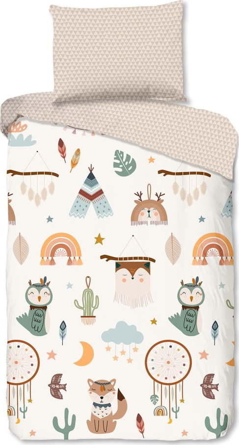 Béžové bavlněné dětské povlečení na jednolůžko 140×200 cm Remi – Good Morning
