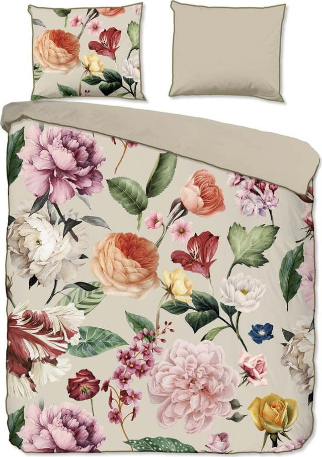 Béžové povlečení na dvoulůžko/prodloužené z bavlněného saténu 200×220 cm Fiori – Descanso