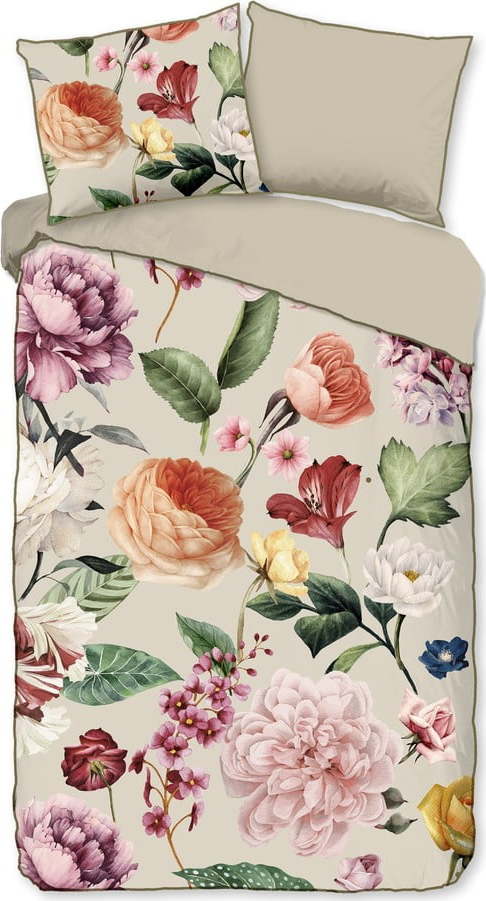 Béžové povlečení na jednolůžko/prodloužené z bavlněného saténu 140×220 cm Fiori – Descanso