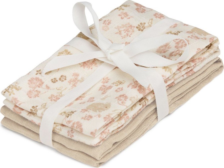 Žínky Augusta od značky Cam Cam Copenhagen tvoří praktickou sadu čtyř kusů. Jsou vyrobeny z jemného mušelínu z bio bavlny.