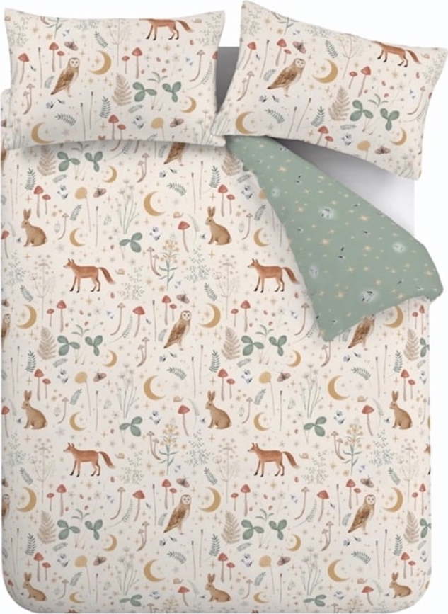Béžovo-zelené povlečení na jednolůžko 135×200 cm Enchanted Twilight Animals – Catherine Lansfield