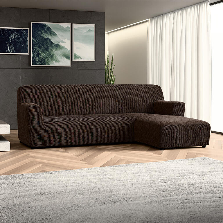 Bielastické potahy COSTINA tabáková sedačka s otomanem vpravo (š. 170 – 300 cm)