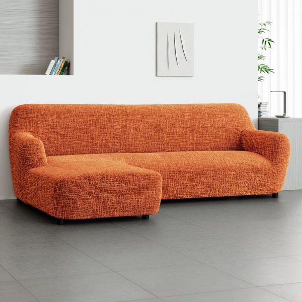 Bielastické potahy GRAFITI NOVÉ cihlové sedačka s otomanem vlevo (š. 170 – 300 cm)