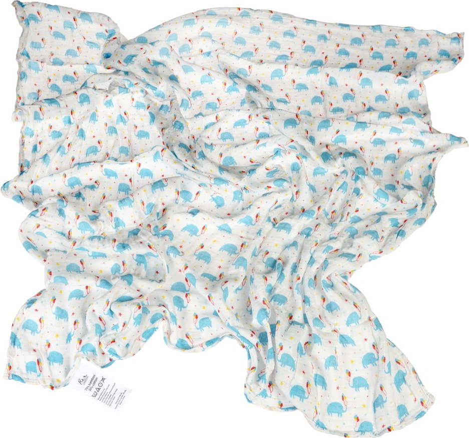 Bílá/modrá mušelínová zavinovací dětská deka 120×120 cm Elephant Party – Rex London
