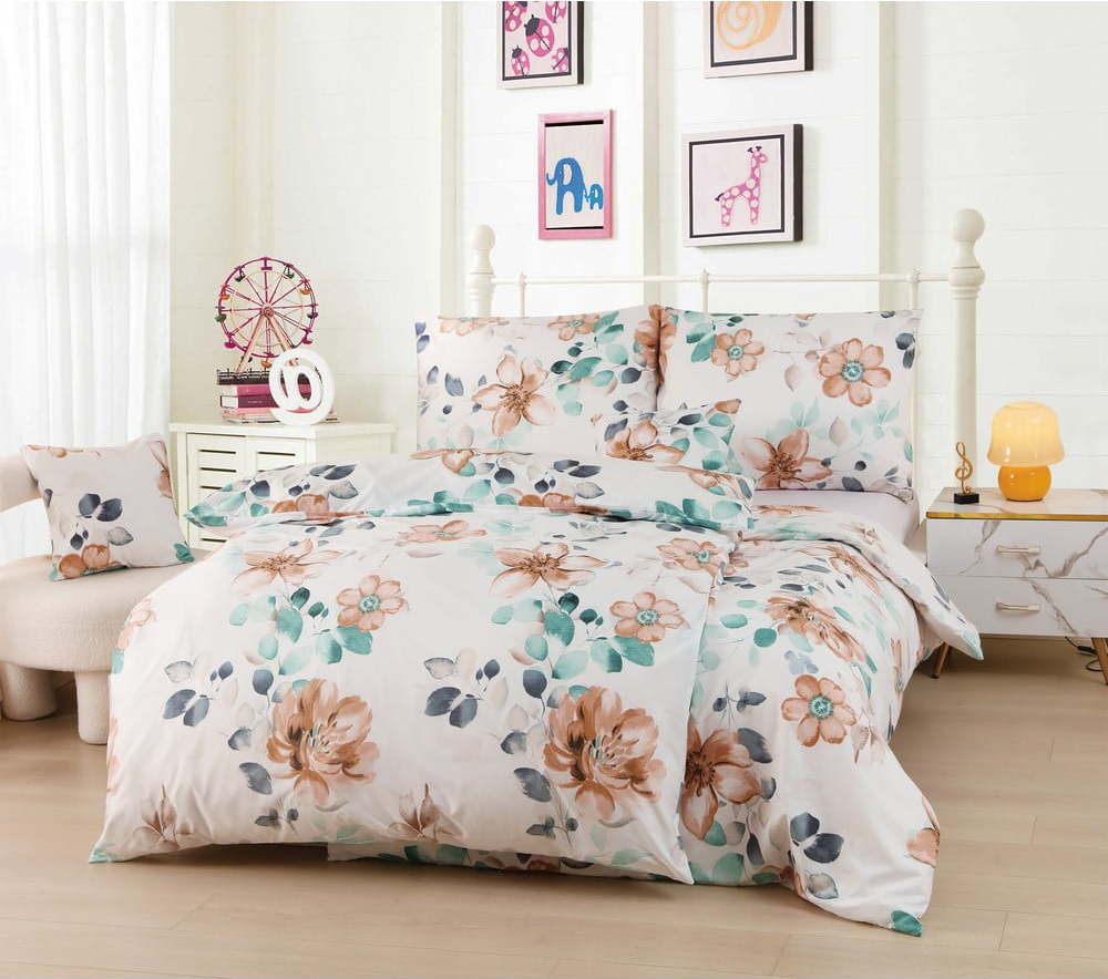 Bílé 6dílné povlečení na jednolůžko z mikrosaténu 140×200 cm Bibiana – My House