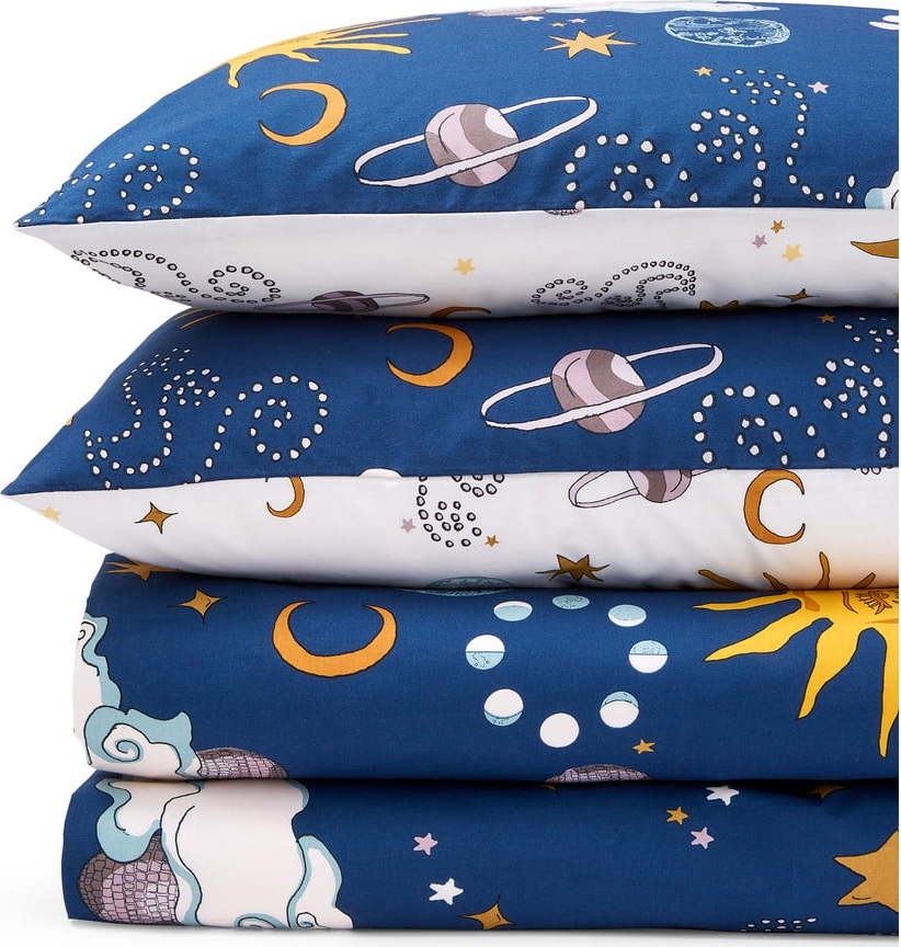 Bílé/modré bavlněné povlečení na jednolůžko 135×200 cm Disco Space – Their Nibs