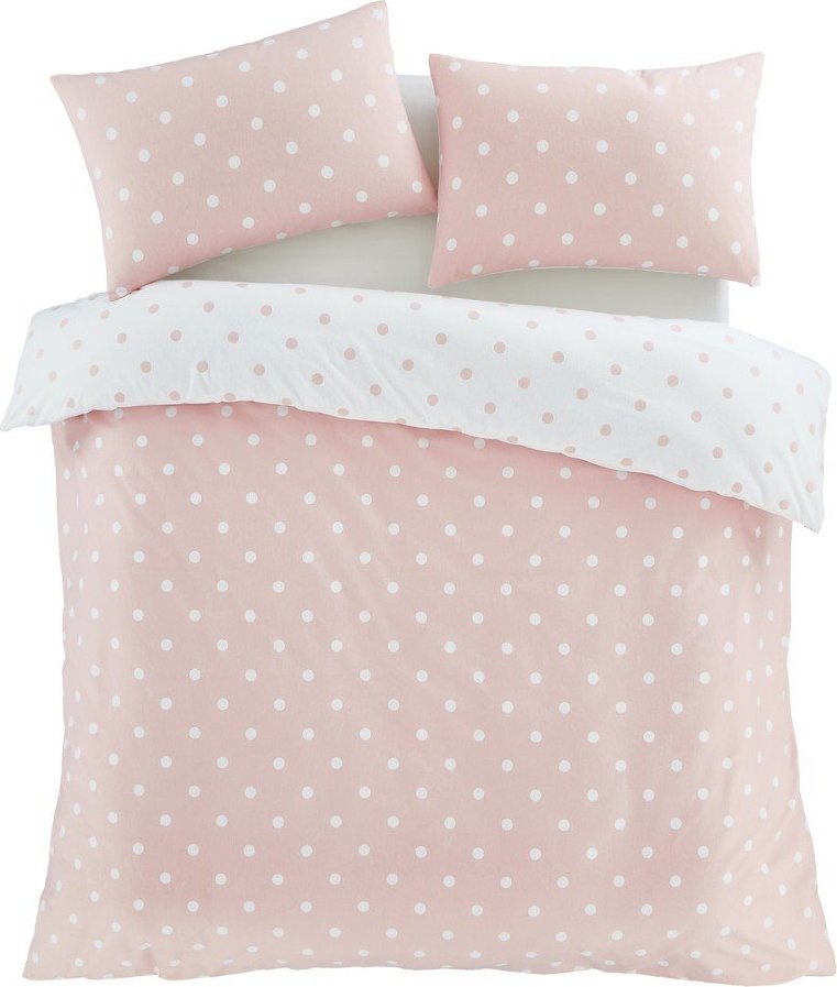 Bílé/růžové flanelové povlečení na dvoulůžko 200×200 cm Polka Dot – Catherine Lansfield