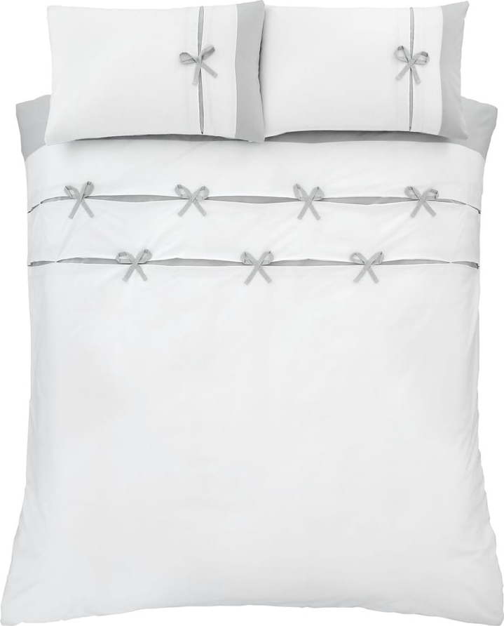 Bílé/šedé povlečení na dvoulůžko/prodloužené 230×220 cm Milo Bow – Catherine Lansfield