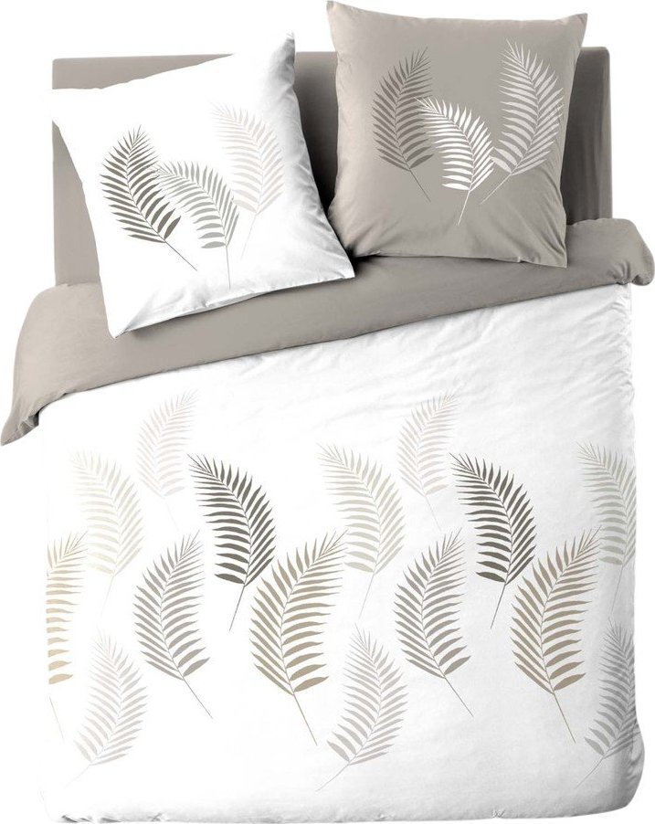 Bílé/taupe bavlněné povlečení na dvoulůžko/prodloužené 240×220 cm Goyave – douceur d’intérieur