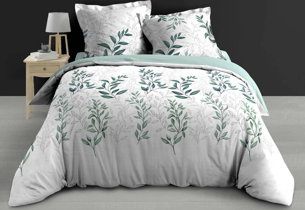Bílé/zelené povlečení na dvoulůžko/prodloužené z bavlněného perkálu 240×220 cm Wendy – douceur d’intérieur