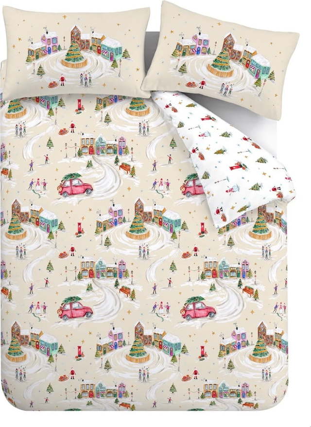 Bílo-béžové povlečení na jednolůžko 135×200 cm Christmas Town – Catherine Lansfield