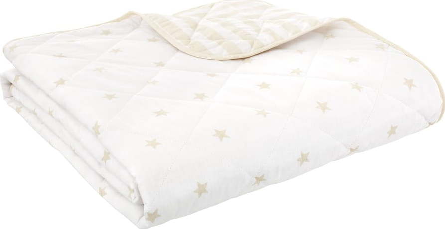 Bílý/béžový bavlněný prošívaný dětský přehoz 135×190 cm Mini Star & Stripes – Bianca