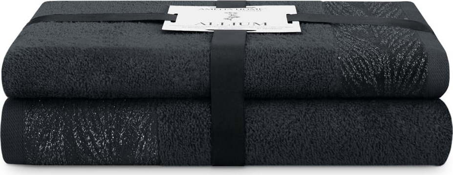 Černé froté bavlněné ručníky a osušky v sadě 2 ks Allium – Restilo
