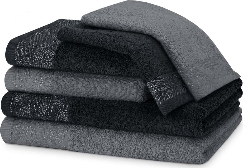 Černé/šedé froté bavlněné ručníky a osušky v sadě 6 ks Allium – Restilo