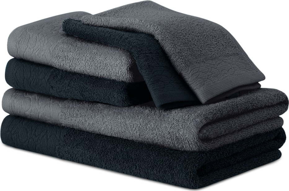 Černé/šedé froté bavlněné ručníky a osušky v sadě 6 ks Flos – Restilo