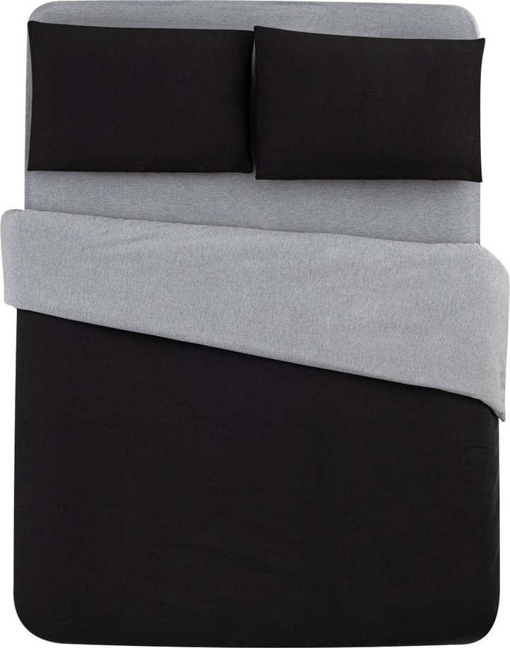 Černo-šedé bavlněné povlečení na jednolůžko/prodloužené s prostěradlem 160×220 cm – Mila Home