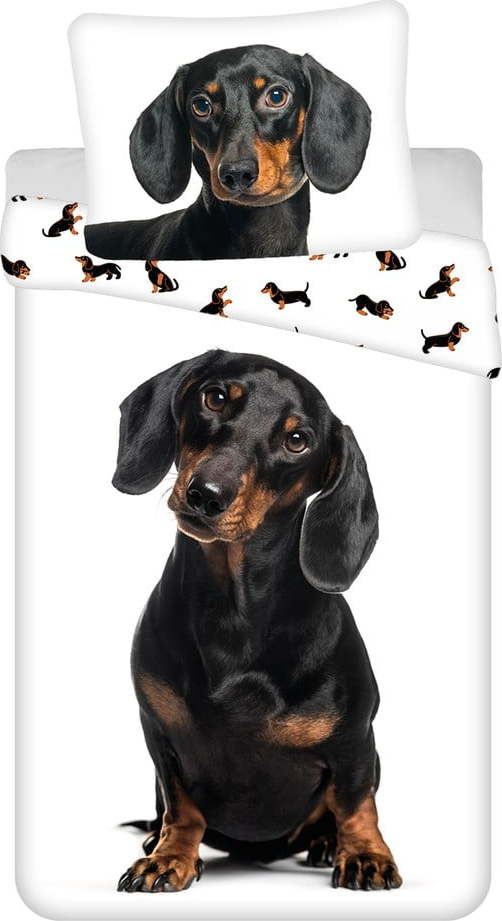 Černobílé bavlněné dětské povlečení na jednolůžko 140×200 cm Dachshund – Jerry Fabrics