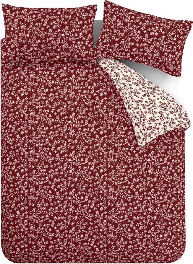 Červené flanelové povlečení na dvoulůžko/prodloužené 230×220 cm Grace Floral Leaf – Catherine Lansfield
