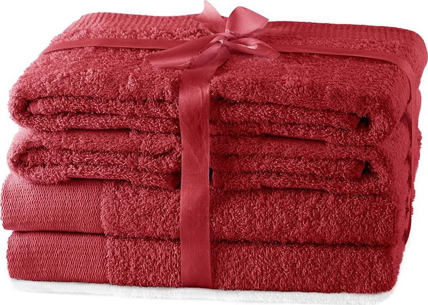 Červené froté bavlněné ručníky a osušky v sadě 6 ks Amari – Restilo