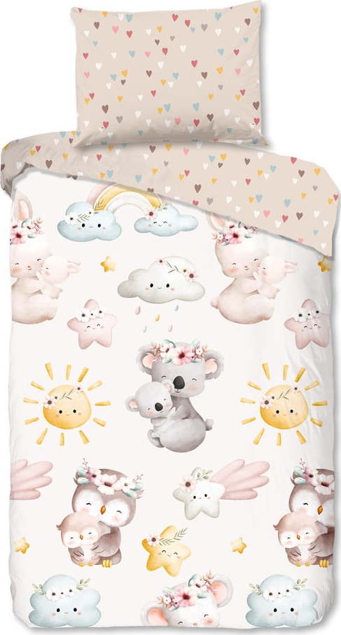 Hnědé/béžové bavlněné dětské povlečení na jednolůžko 140×200 cm Hugs – Good Morning