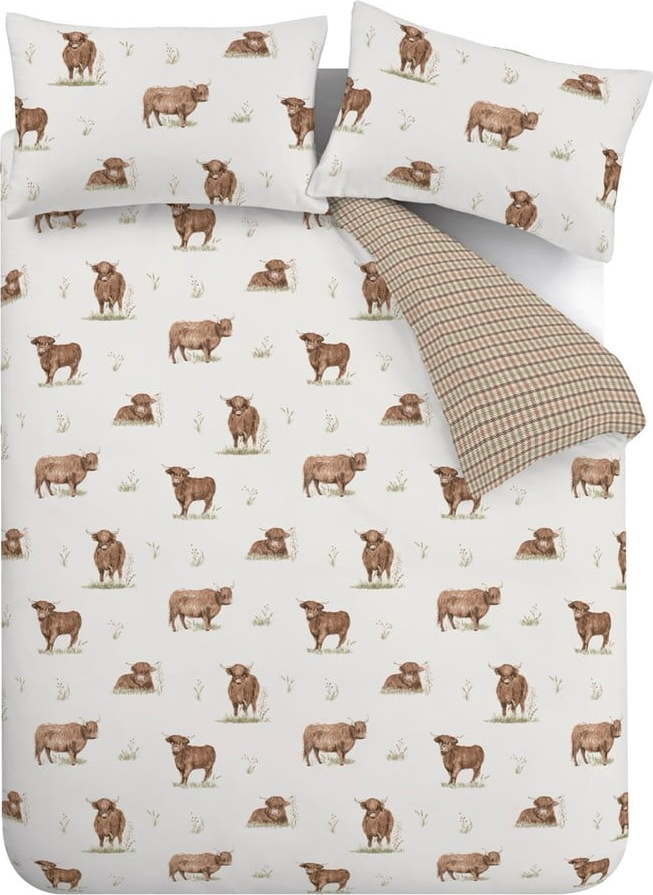 Hnědé/béžové povlečení na dvoulůžko 200×200 cm Angus Highland Cow – Catherine Lansfield