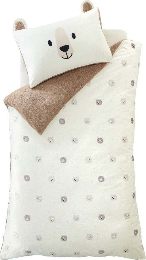 Hnědé/krémové dětské povlečení na dvoulůžko z mikroplyše 200×200 cm Cosy Bear – Catherine Lansfield