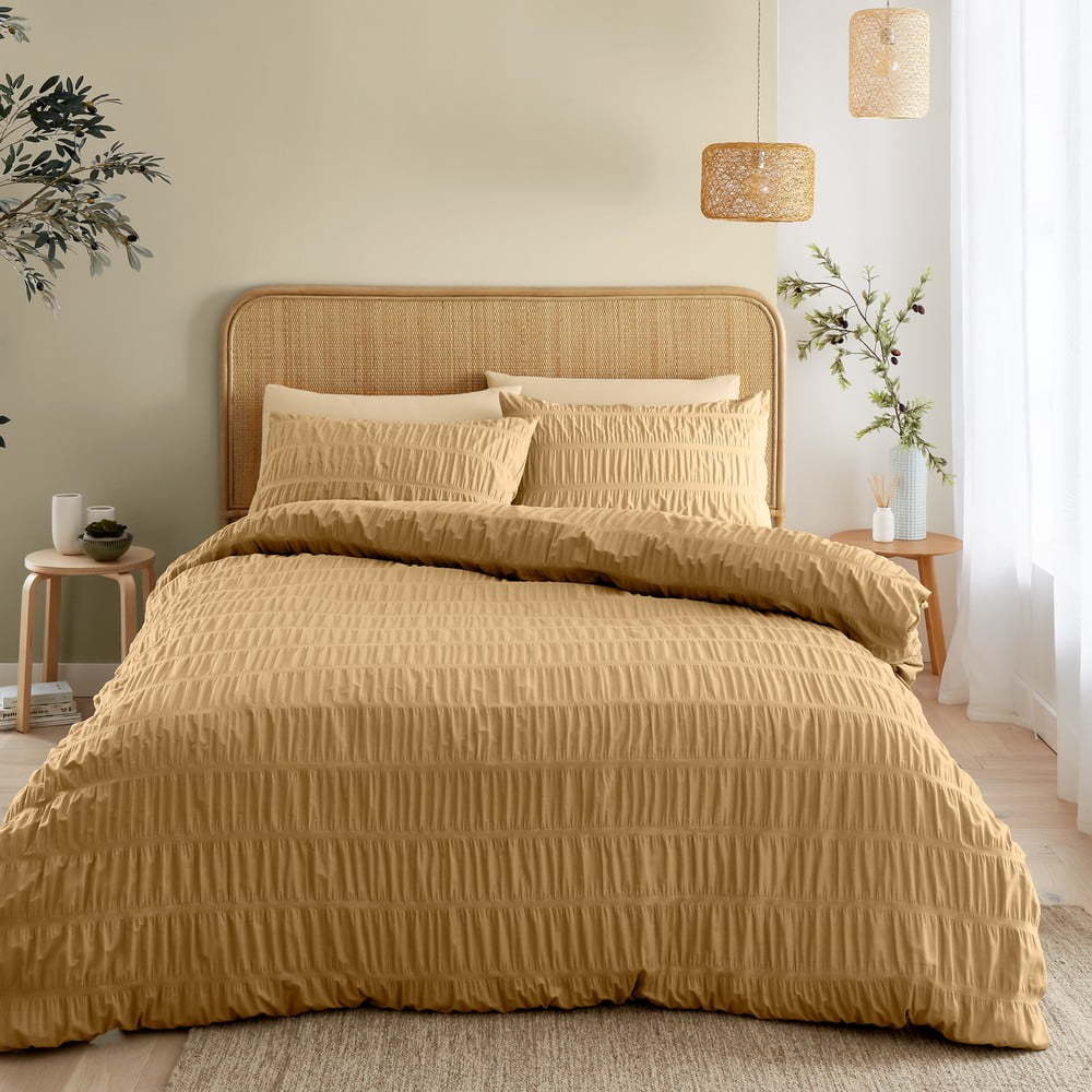Hnědé krepové povlečení na dvoulůžko 200×200 cm Seersucker – Catherine Lansfield