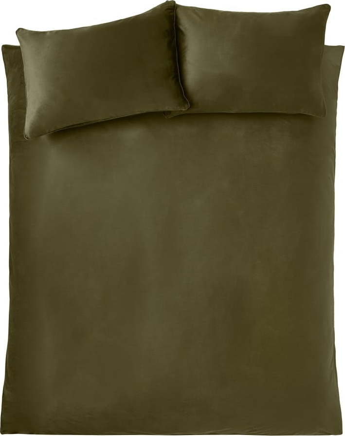 Khaki sametové povlečení na dvoulůžko/prodloužené 230×220 cm Kingsley – Catherine Lansfield