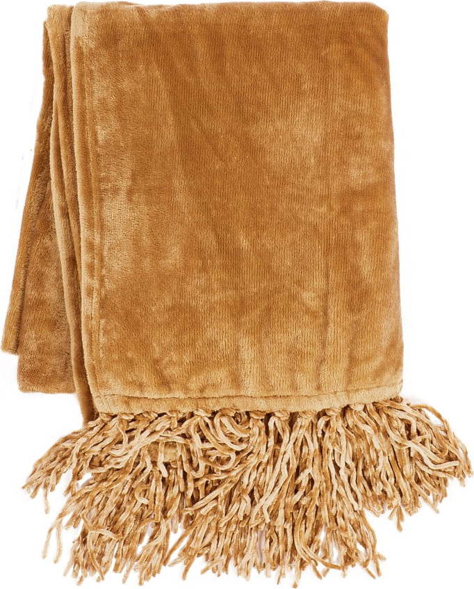 Koňakově hnědý přehoz z mikroplyše na dvoulůžko 220×240 cm – Tiseco Home Studio