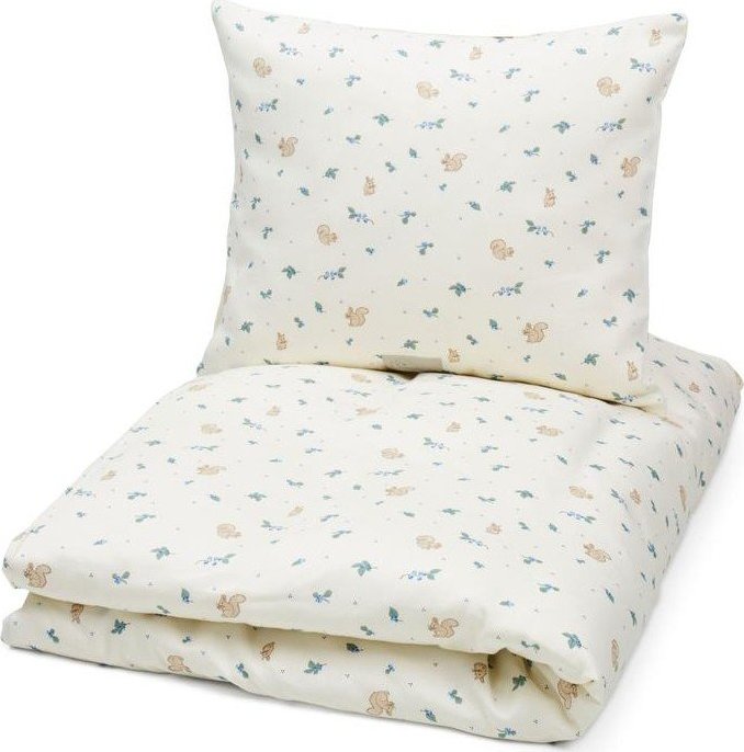Dětské povlečení Blueberries od značky Cam Cam Copenhagen je vyrobeno z hedvábně jemné organické bavlny s certifikací GOTS. Díky saténové vazbě je povlečení extra měkké na dotek a přispívá k pohodlnému spánku. Zdobí ho něžný vzor s motivy veverek a drobných lístků.