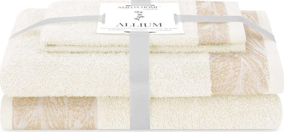 Krémové froté bavlněné ručníky a osušky v sadě 3 ks Allium – Restilo