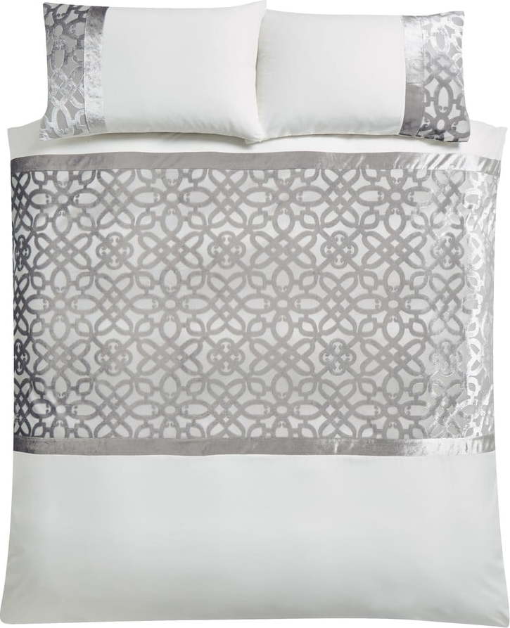 Krémové/šedobéžové sametové povlečení na dvoulůžko/prodloužené 230×220 cm Lattice Cut – Catherine Lansfield