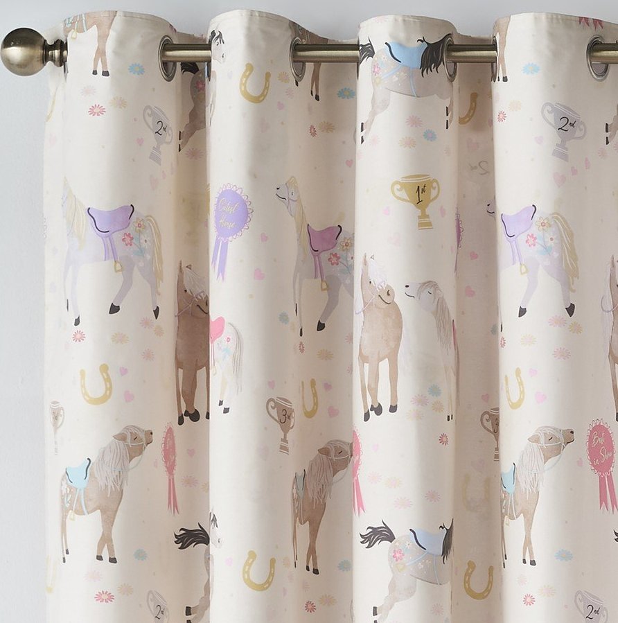 Závěsy Happy Horses od značky Catherine Lansfield promění každý dětský pokoj v kouzelné místo plné radosti. Zdobí je hravý potisk s roztomilými poníky, což z nich dělá vítěznou volbu pro každého malého milovníka koní.