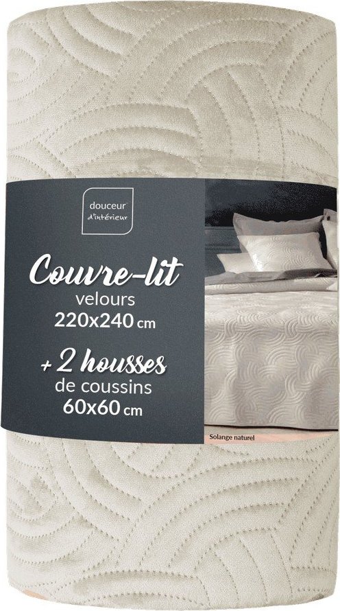 Krémový sametový set přehozu a povlaku na polštář 220×240 cm Solange – douceur d’intérieur