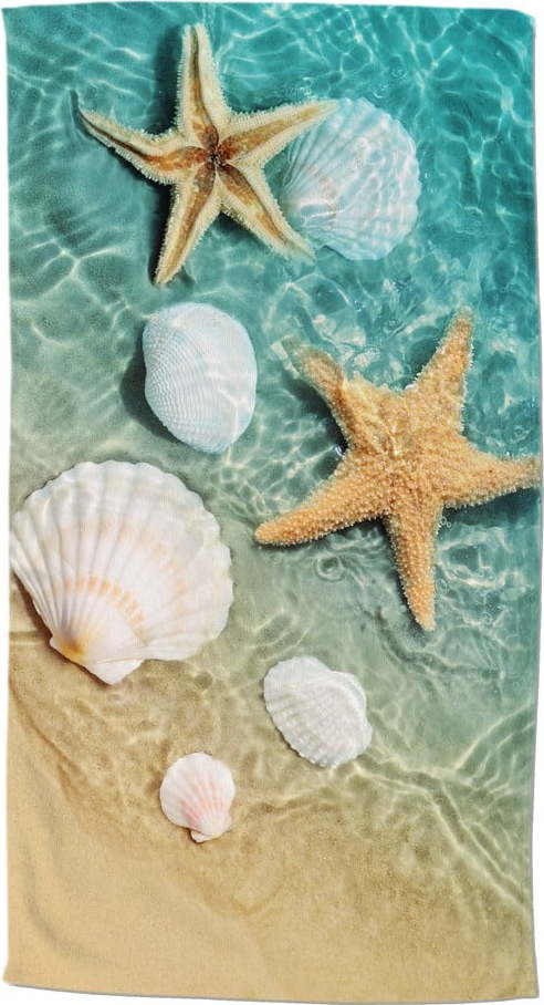 Modrá/béžová sametová plážová osuška 100×180 cm Beachvibe – Good Morning