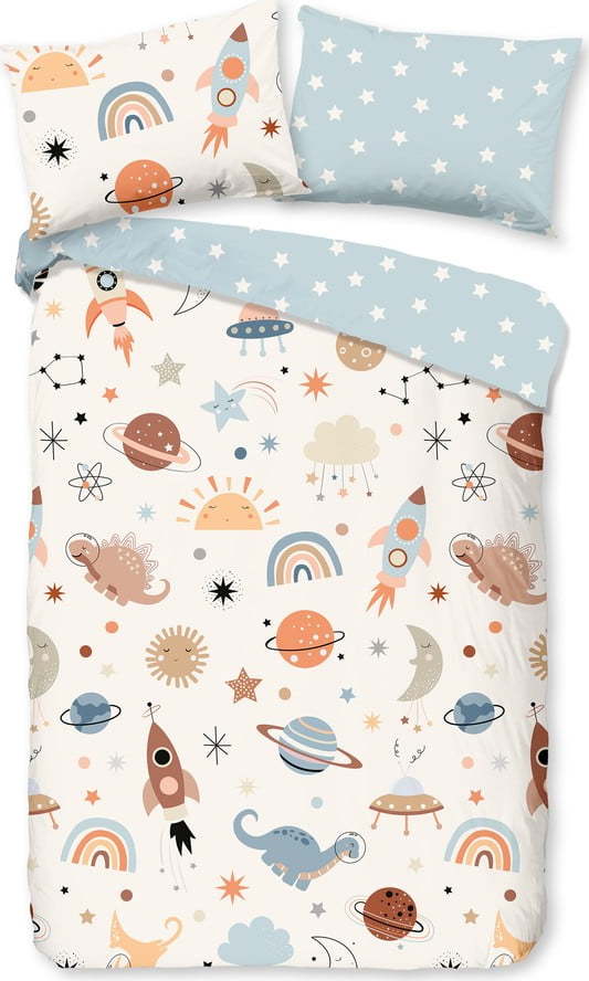 Modré/béžové bavlněné dětské povlečení do postýlky 100×135 cm Eclips – Good Morning