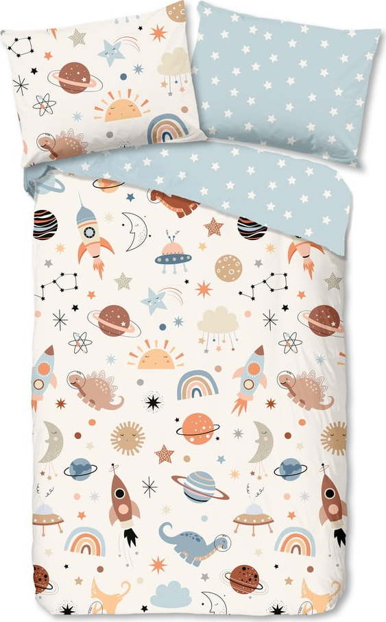 Modré/béžové bavlněné dětské povlečení na jednolůžko 140×200 cm Eclips – Good Morning