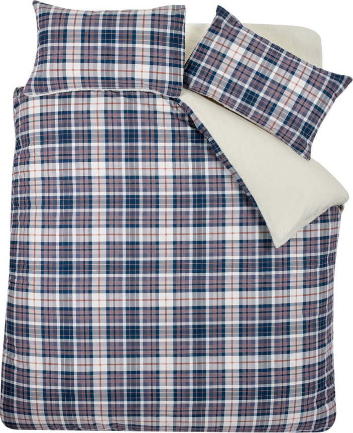 Modré/béžové povlečení na dvoulůžko s beránkem 200×200 cm Cosy Sherpa Check – Catherine Lansfield