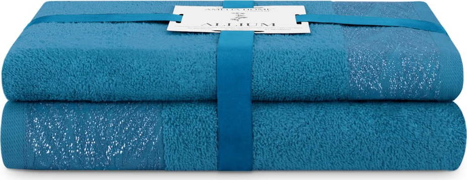 Modré froté bavlněné ručníky a osušky v sadě 2 ks Allium – Restilo