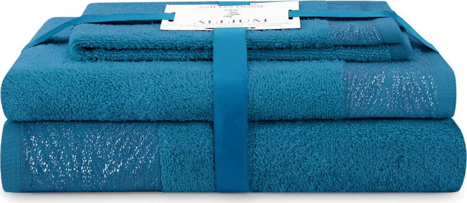 Modré froté bavlněné ručníky a osušky v sadě 3 ks Allium – Restilo