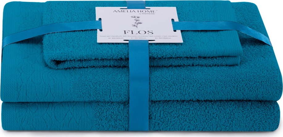 Modré froté bavlněné ručníky a osušky v sadě 3 ks Flos – Restilo