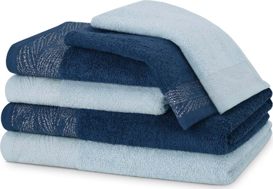 Modré froté bavlněné ručníky a osušky v sadě 6 ks Allium – Restilo