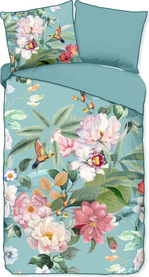 Modré povlečení na jednolůžko/prodloužené z bavlněného saténu 140×220 cm Fungi – Descanso